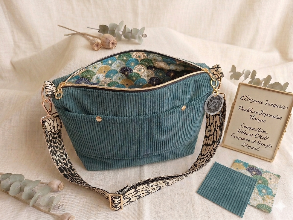Sac Bandoulière Velours Côtelé Bleu Pétrole