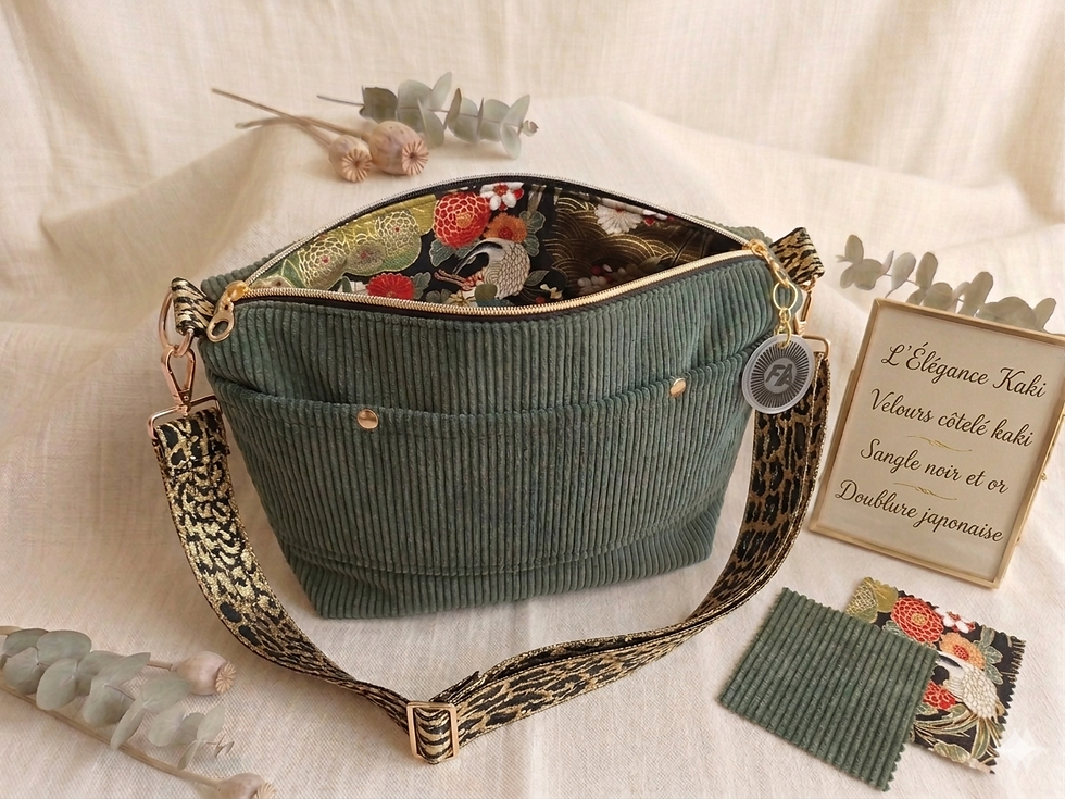 Sac Bandoulière Velours Côtelé Kaki Clair